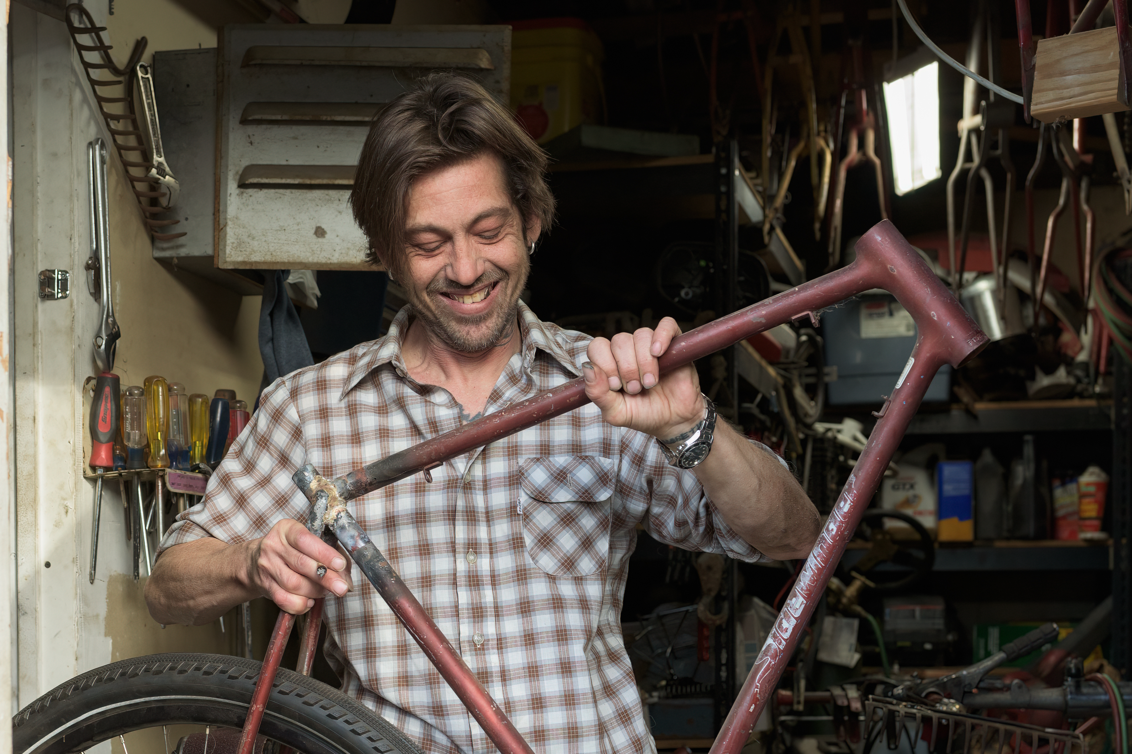 Hernan Montenegro does it all. He shredded a BMX and fixed-gear in “To Live & Ride in LA.” Nowadays he operates Montenegro Manufacturing, a custom carbon frame operation. But he had to work as a bike messenger for three years to keep the lights on. This is his story.